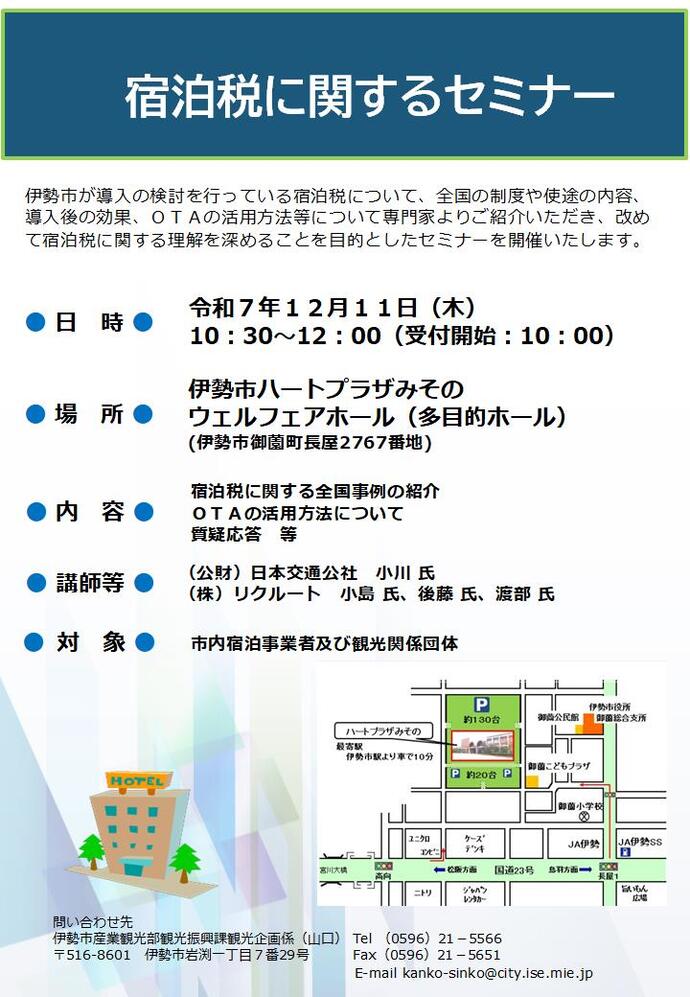全国の制度や使途の内容、導入後の効果、OTAの活用方法等について専門家よりご紹介いただき、改めて宿泊税に関する理解を深めることを目的としたセミナーを開催いたします。